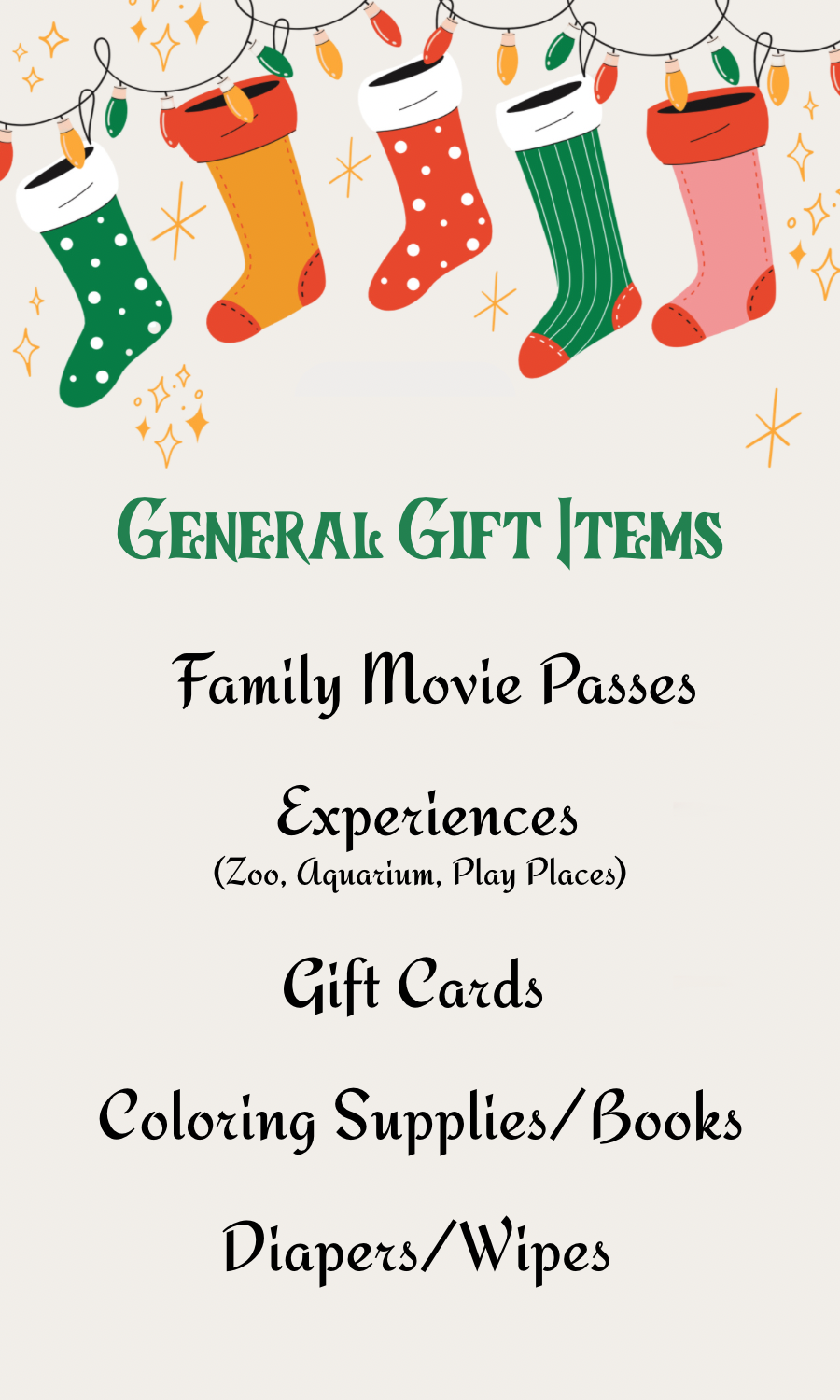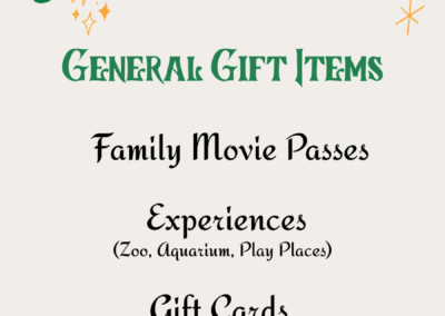 Each tag is connected to an item or list. Buy the gift from wherever you’re shopping (Amazon, Walmart, Target, etc.). You can have them shipped directly to our processing office. Please contact Heather for the shipping address. Call or text 307.213.9327 or email info@adoptionfinder.org to schedule drop off or if you have any questions. Make sure to include your wishlist tag name in subject and gift. -