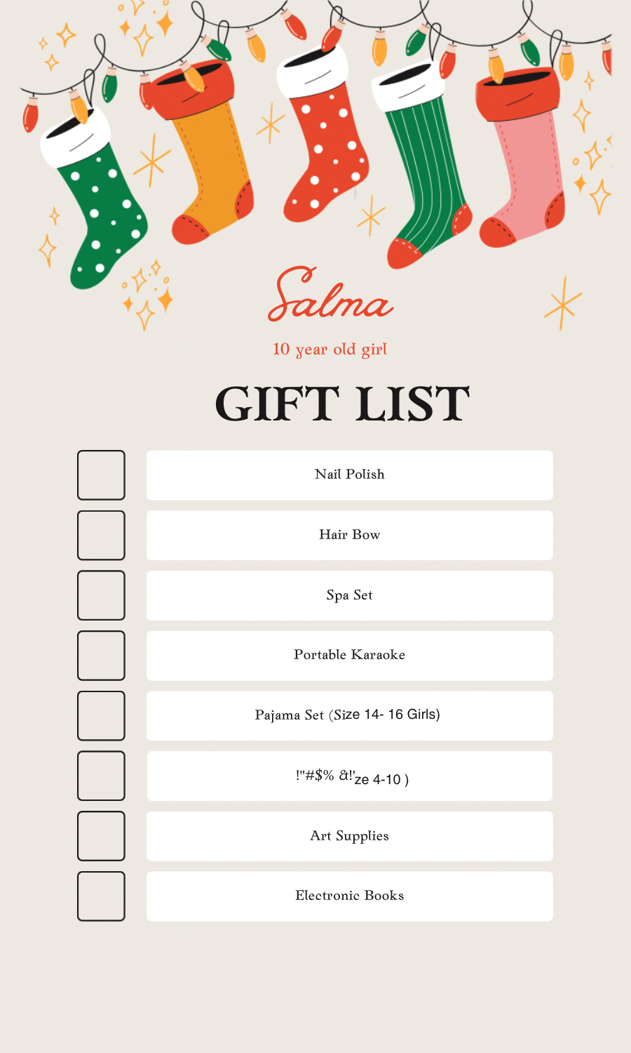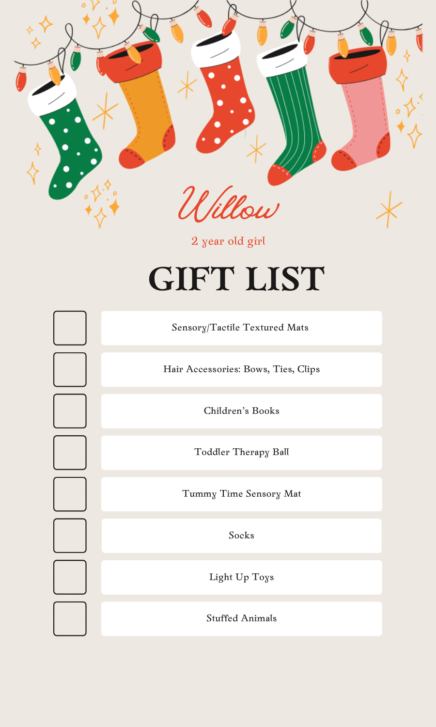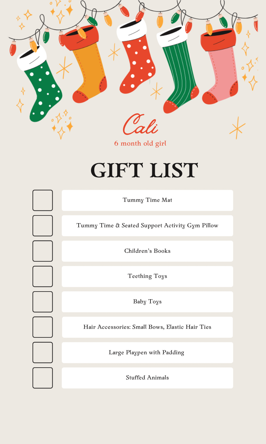 Spread the love by sharing the wishlist with friends, churches, workplaces, and families.